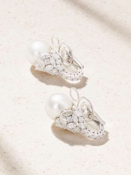 Exquisite and intriguing, YEPREM's earrings demand a closer look. Resembling budding flowers through a dream-like lens, they're handcrafted from 18-karat white gold and set with over 4.00-carats of diamonds in a mix of cuts. The pearls have a beautiful glow.