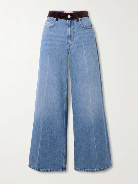 MARNI Appliquéd velvet-trimmed wide-leg jeans