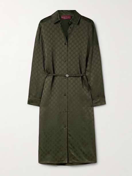 Gucci's midi dress is made from satin that's jacquard-woven with the iconic monogram. It's cut in a loose, shirt-style design with a neat collar and buttoned cuffs. The slim leather belt features the 'GG' emblem.