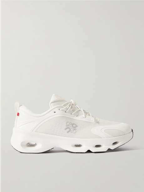 Rooted in ON's technical innovation, Loewe's 'Cloud' sneakers showcase the Spanish house's love of artful yet functional design. They're made from breathable recycled mesh, accented with swirling rubber trims and set on cushioning soles that maximize take-off with every step. A special collaborative logo stamps the side.