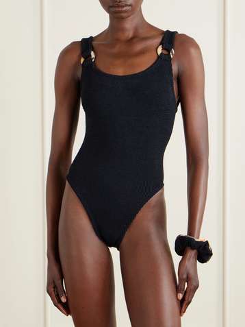 + Hunza G Domino embellished Original Crinkle™ swimsuit