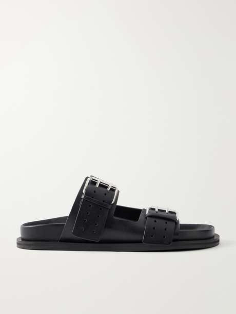 A.EMERY’s 'Leon' slides are crafted from smooth leather and feature a buckled two-strap design with a perforated motif and round open toes. Chunky rubber soles and contoured footbeds ensure comfort, making them an ideal everyday summer shoe.