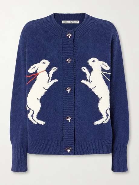 Rooted in a handmade, bohemian ethos, Alix of Bohemia approaches knitwear as storytelling. The 'Sammi' cardigan is spun from Italian cotton and detailed with hand-embroidered hares and artisanal mushroom buttons. A piece that blends craft with a subtle sense of fantasy.