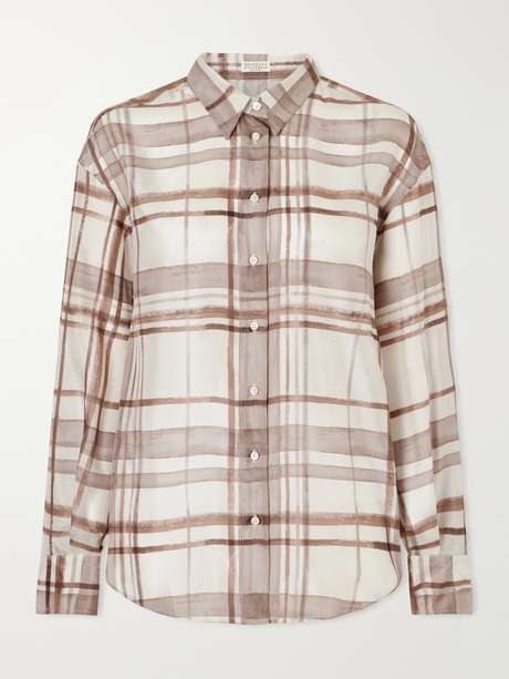 BRUNELLO CUCINELLI Checked silk-satin shirt