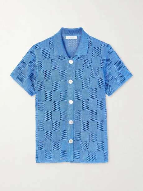 Calle Del Mar's cardigan plays with texture to create a subtle checked effect. Made in the USA, it contrasts open-knit sections with denser stitches and is finished with a collar and buttoned front. Style it with the matching pants.