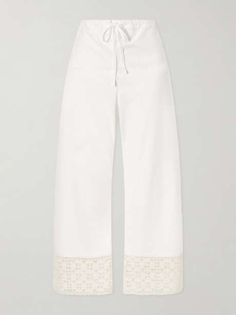 CALLE DEL MAR Heriloom lace-trimmed cotton-poplin wide-leg pants