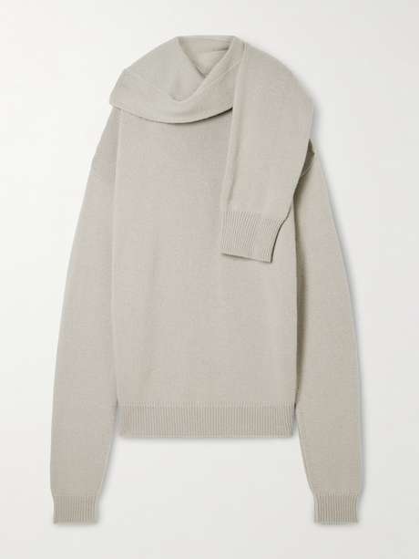 Calvin Klein Collection's 'Mia' sweater is designed to look like two styles layered together. Made from cashmere, it has a slouchy shape and scarf-effect overlay that looks like a sleeve knotted around your neck. Wear yours with tailored pants and heels.
