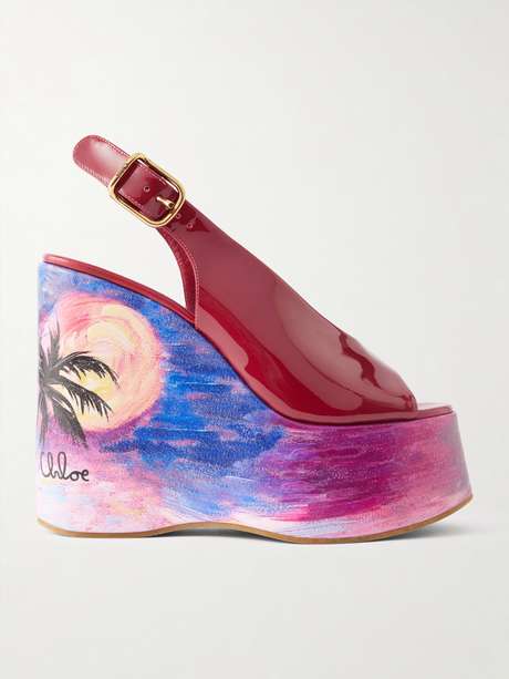 Thanks to Chloé's 'Maxime' sandals, you can take the spirit of the beach with you wherever you go. Set on towering wedges with a sunset motif and hand-drawn signature, they're made from glossy patent-leather.
