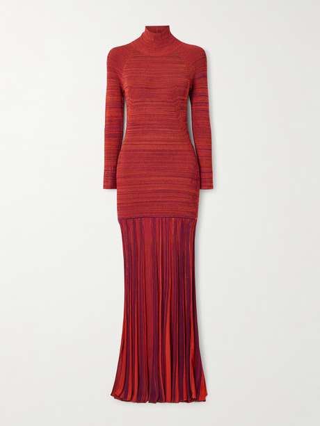 Christopher John Rogers has an impeccable eye for color. This 'Paprika' turtleneck gown is rib-knitted for a slim fit through the body and falls to a semi-sheer skirt that's softly pleated for beautiful movement. Wear yours with tonal pumps or sandals and accessorize with glittering earrings.
