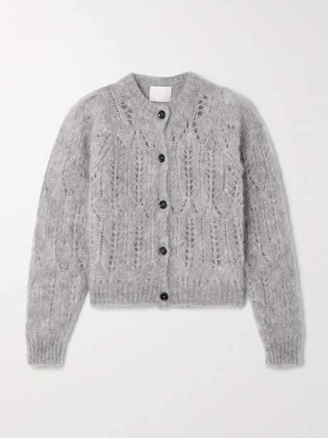 Citizens of Humanity's 'Odette' cardigan is pointelle-knitted from soft mohair-blend. Defined by a cropped fit, it comes in a versatile gray mélange that has endless styling options.