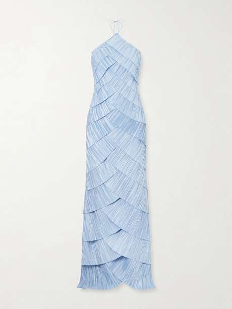 Cult Gaia's 'Marsla' gown is defined by its sculptural construction. Cut from the label's signature plissé-satin, cascading tiers fall from a delicate halter neckline to the sweeping hem.