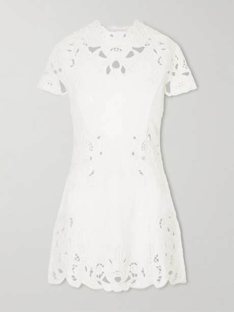 Cult Gaia's 'Zafira' mini dress is cut from lightweight linen, traced with delicate guipure lace. Designed with a close-fitting bodice and softly flared skirt, the florals lend depth and texture.