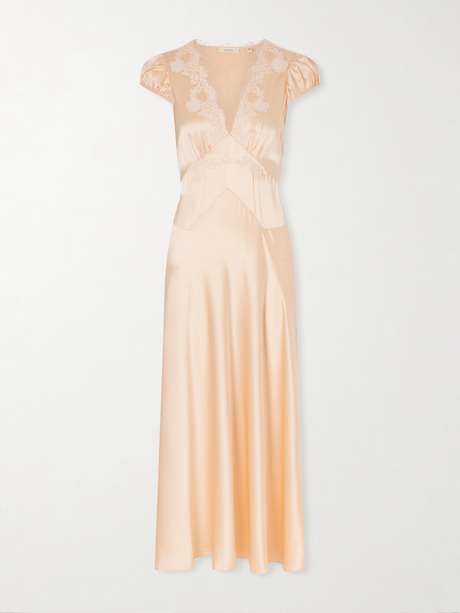 DÔEN Coraline corded lace-trimmed silk-satin midi dress