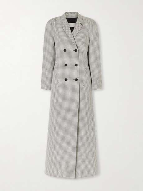 Tailored from double-faced gingham, the 'Ronna' long coat by Dries Van Noten is cut to a streamlined, double-breasted silhouette. The precise structure is softened by the subtle pattern. A refined balance of classic tailoring and modern restraint.