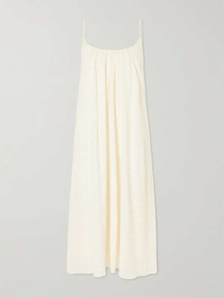 Light and luminous, the 'Confidentielle' dress by Eres drapes over the body like a delicate veil. Slender straps and a softly gathered silhouette evoke effortless grace, making it an understated choice for summer evenings.