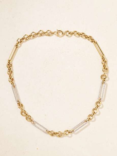 Foundrae describes its symbolic jewelry as "modern heirlooms, ones that allow the wearer to express something of oneself to the world". Designed to be strung with the label's signature charms, this necklace is handcrafted from 18-karat gold and composed of interlocking round and elongated links, latter of which are encrusted with light-catching pavé diamonds.