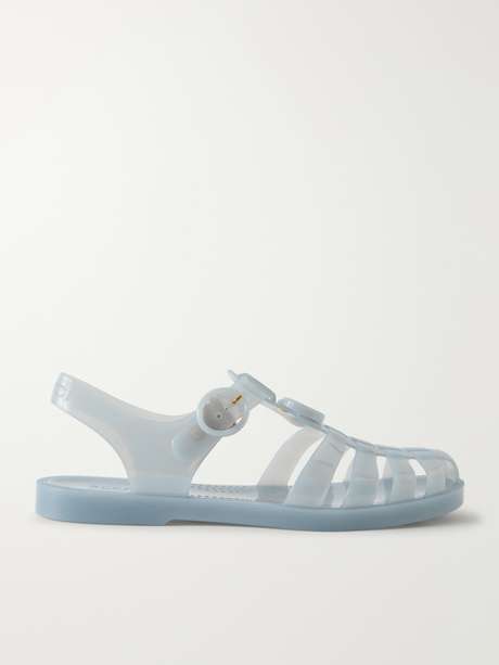 Gucci exudes playful luxury with these sandals in pastel blue rubber. They feature a classic fisherman design and are finished with the tonal 'Double G' emblem, making them a refined complement to cropped pants or a sun-ready dress.