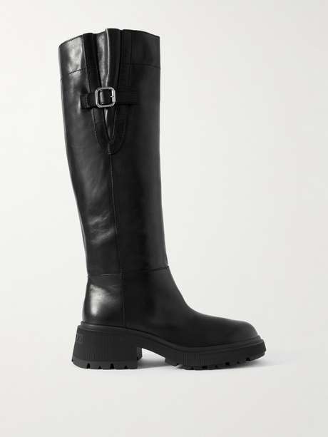 Embrace the season's moto boots trend in a subtle and refined way with Jimmy Choo's knee-high version. Made from glossed-leather, they have buckled tabs and gripped rubber soles that offer traction and lift.