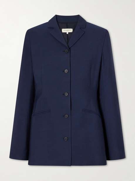 KALLMEYER's 'Benny' blazer has a slim, elongated silhouette with a notched lapel and five-button front. Fitted through the body with a nipped waist, it falls to a longline hem with welt pockets for a clean finish. Reference the Spring '26 runway and style it with a printed blouse underneath.