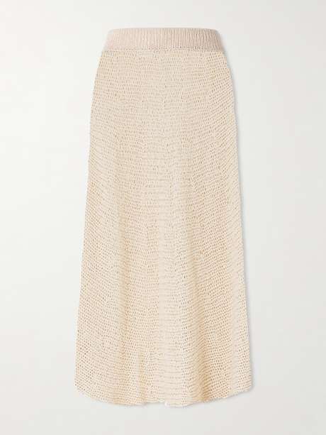 KHAITE Inaya crocheted cotton and silk-blend midi skirt