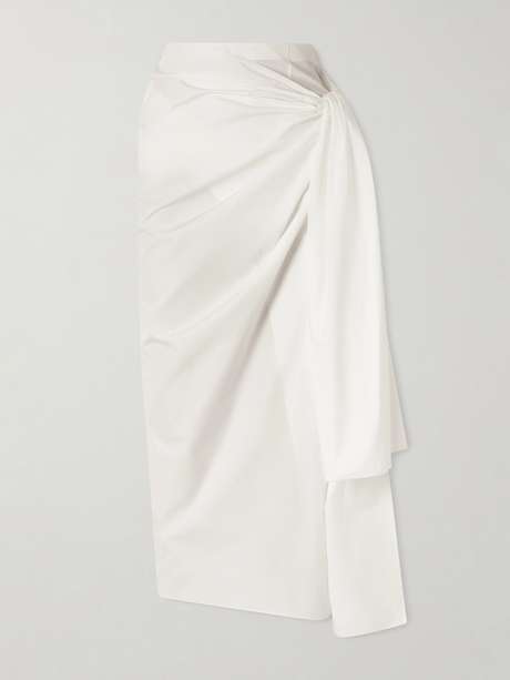 KHAITE Shay tie-detailed draped cotton-poplin wrap midi skirt