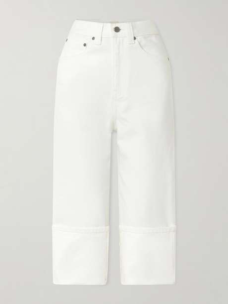 KHAITE's 'Boyle' jeans belong to the Spring '26 collection, where minimalism meets a modern city edge. Inspired by the ongoing capri pant trend, they have cropped legs with exaggerated turned-up cuffs. Wear yours with a sculptural knit and kitten-heel pumps.