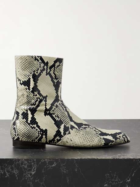 KHAITE carefully selects its fabrics to ensure exceptional texture and uncompromising quality, each one enhancing the luxury of the label's understated yet refined collections. These 'Colt' boots are made from snake-effect leather and have a minimal, sock-like design with a slight heel.