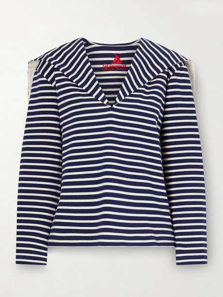 LES VACANCES D'IRINA Seaman striped cotton-jersey blouse