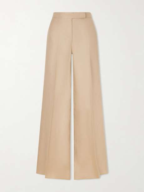 Max Mara’s Spring ’26 collection juxtaposes ’80s elegance with 18th-century Rococo opulence. Tailored from lightweight linen, these ‘Big’ pants have streamlined wide legs defined by pleats. Style yours with the matching blazer, as seen on the runway.