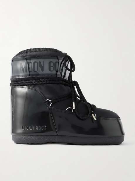 Moon Boot's snow boots are reminiscent of the original 'Icon' style debuted in 1969. This 'Low Glance' pair is made from glossy PVC and satin with tonal logos and laces. They have insulating padding and cushioned rubber soles that provide plenty of comfort, whether you're in the city or on the slopes.