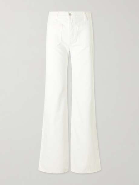 Nili Lotan often slips '70s references into her collections, and the flared silhouette of these 'Florence' jeans is a clear nod to the era. Washed in a shiny white, they sit high on the waist and have subtle distressing along the legs. Style them with a chunky sweater and ankle boots.