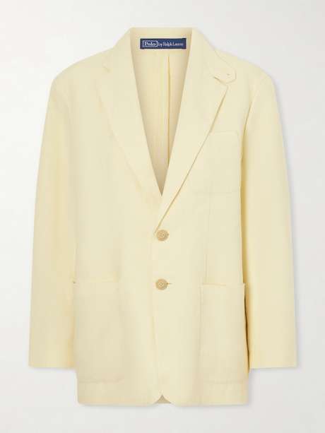 Polo Ralph Lauren’s understated approach to tailoring is reflected in this blazer. Cut from linen in a single-breasted profile with notched lapels and subtle waist pleats, it’s rendered in a soft pastel yellow hue.