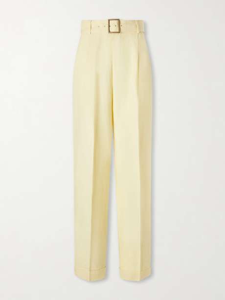 Polo Ralph Lauren’s understated approach to tailoring defines these pants. Cut from linen, they fall in wide legs with pressed pleats that enhance the fluid drape, while a matching buckled belt defines the waist and folded cuffs lend a considered finish.