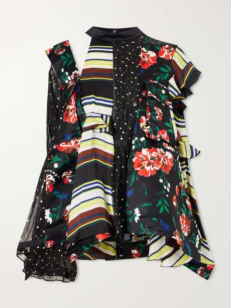 SACAI Pattern Mix printed ruffled blouse