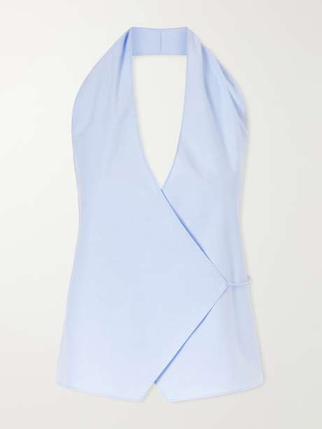 ST.AGNI’s top draws on ’90s minimalism. Made from organic cotton-poplin, it features a V-neckline and a wrap-style silhouette that ties at the side to adjust the fit.