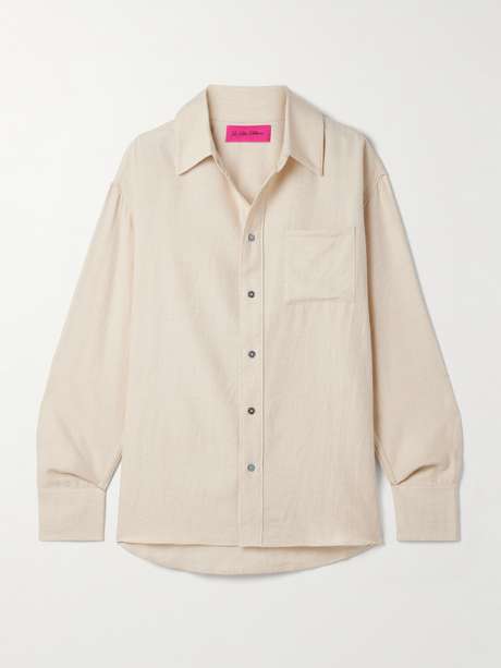 The Elder Statesman's shirt is made from wool and cashmere-blend twill that's incredibly soft. Designed in a versatile beige shade, it has a loose fit with dropped shoulders and lustrous mother-of-pearl buttons. Wear yours alone or open over a tank.