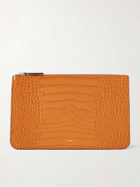 TOTEME’s clutch is informed by the label’s eye for refined, enduring design. Made in Spain from glossy croc-effect leather, it has a three-fold silhouette sized to fit your phone, cards and keys in the suede-lined interior.