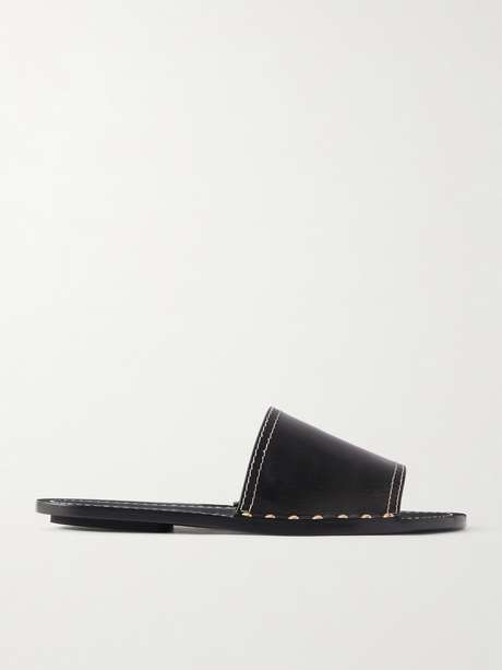 TOTEME's slides balance clean lines with a subtle edge. Made from smooth leather, they’re set on flat soles and traced with gold-tone studs and contrast stitching.