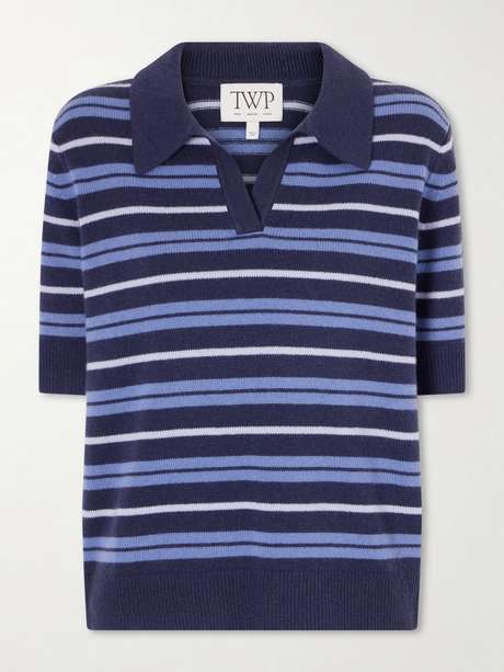 TWP’s slightly oversized polo is crafted from soft cashmere, offering a smooth, elevated feel with a relaxed drape. Defined by multi-stripe detailing, the silhouette blends classic sport references with a modern, easy proportion.