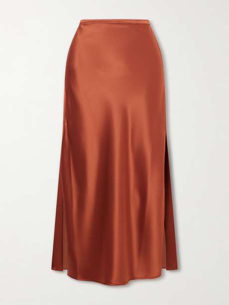 'Goya' midi skirt by Violante Nessi is cut from satin to a fluid, softly draped silhouette. It falls cleanly through the frame with a subtle sheen. Style it with a fitted top or blouse for a balanced look.