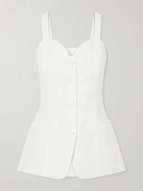 Violante Nessi's 'Henriette' top is defined by its sculptural shape. Cut from lightweight linen, it’s shaped with a heart-shaped neckline and slender straps, while mother-of-pearl buttons trace the front.