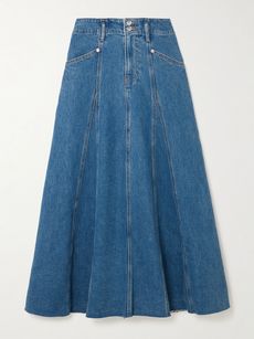 Alix panelled frayed denim midi skirt