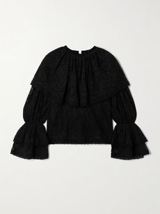 Hypnotic appliquéd ruffled lace blouse