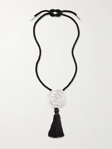 Silver-plated and tasseled cord necklace