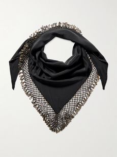 Ezane bead-embellished silk-crepe and open-knit scarf