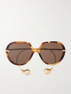 Drop round-frame tortoiseshell acetate and gold-tone sunglasses