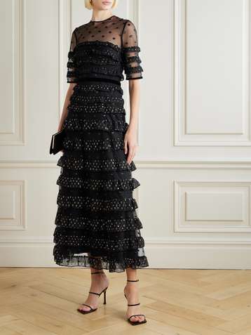 Athens-based Christos Costarellos studied costume design at the London College of Fashion before founding his eponymous brand in 1998. He uses couture techniques to create ethereal dresses and gowns inspired by ancient Greek mythology. Our exclusive capsule includes vibrant eveningwear with beautiful details like lace appliqués, Swiss-dot trims and intricate embroidery.