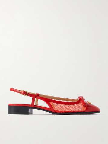 Valet Du Roi tasseled leather and mesh slingback ballet flats