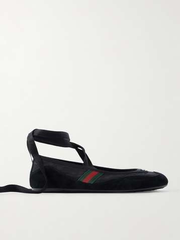Shift webbing-trimmed canvas-jacquard and suede ballet flats