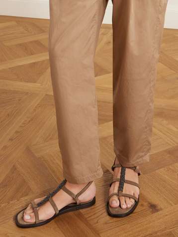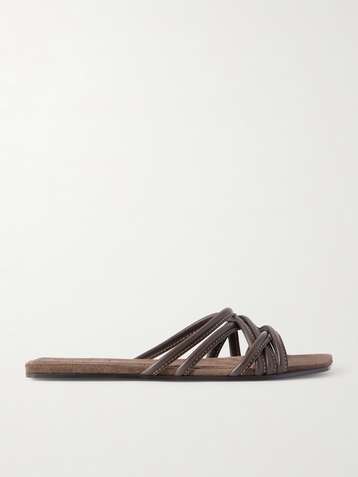 Bead-embellished suede slingback sandals